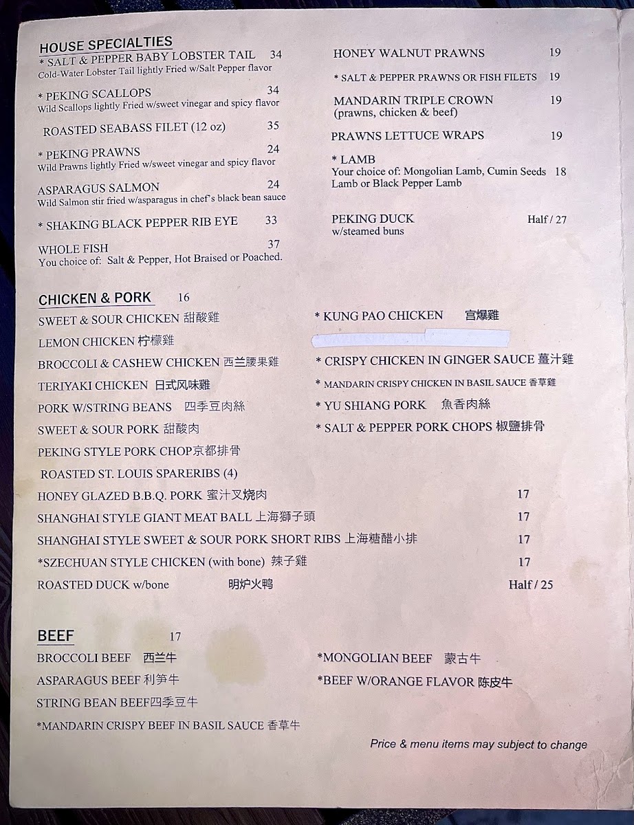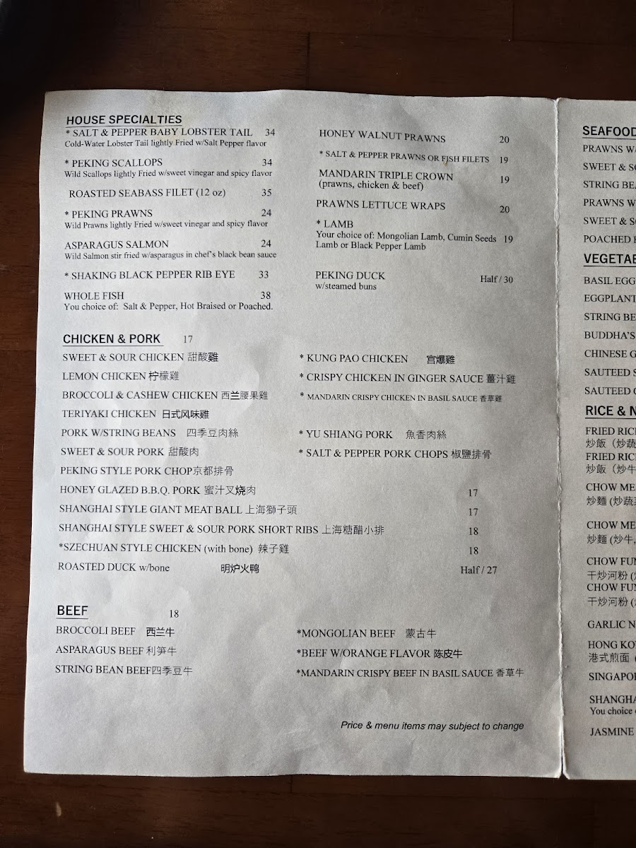 Lamb stir fried with fresh vegetables. Your choice of flavor: Mongolian, Black Pepper or Cumin Seeds