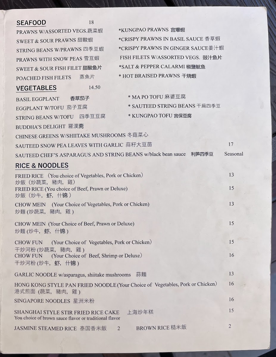 Combination of prawns, chicken, beef and fresh vegetables stir-fried in chefs spicy garlic Sauce